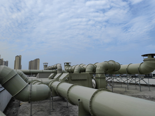 調查室的廢氣 → 活性氧炭過濾水器 → 引風機電機 → 排出